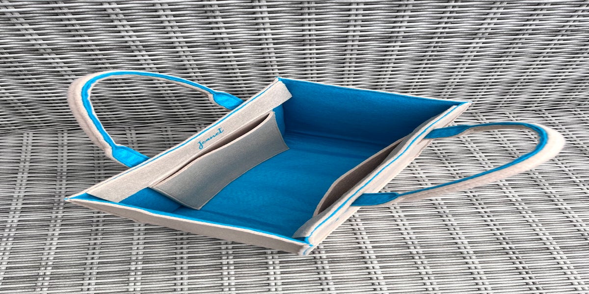 Alle tassen zijn gemaakt van stevig, licht beige vilt dat de perfecte achtergrond vormt voor de verschillende leuke teksten waar je uit kan kiezen. De tekst krijgt dezelfde kleur als de accentkleur die aan de binnenkant van de tas gebruikt wordt.